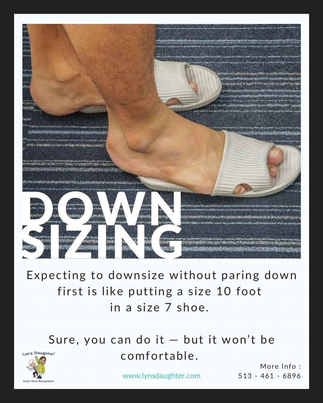 “Expecting to downsize without paring down first is like putting a size 10 foot in a size 7 shoe. Sure, you can do it. But it won’t be comfortable.” ~ Lyn’s Daughter